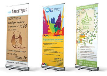 Существует как односторонние, так и двухсторонние варианты стендов roll-up.
